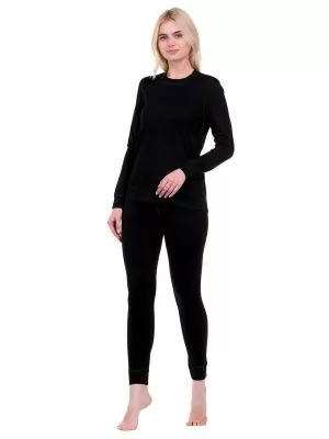 Классический комплект женского термобелья в практичном черном цвете. Теплый и удобный комплект предназначен для активного отдыха, занятий спортом и ежедневного ношения в городе. Тонкий износостойкий материал термобелья для женщин отличается устойчивостью к истиранию, отличной воздухопроницаемостью и защитой от холода. Модель отлично сидит на любом типе фигуры и не сковывает движения.Плоские внутренние швы термобелья не натирают кожу и не доставляют дискомфорта даже после длительного ношения. Практичный комплект женского термобелья станет идеальным вариантом на каждый день и будет радовать вас не один сезон.